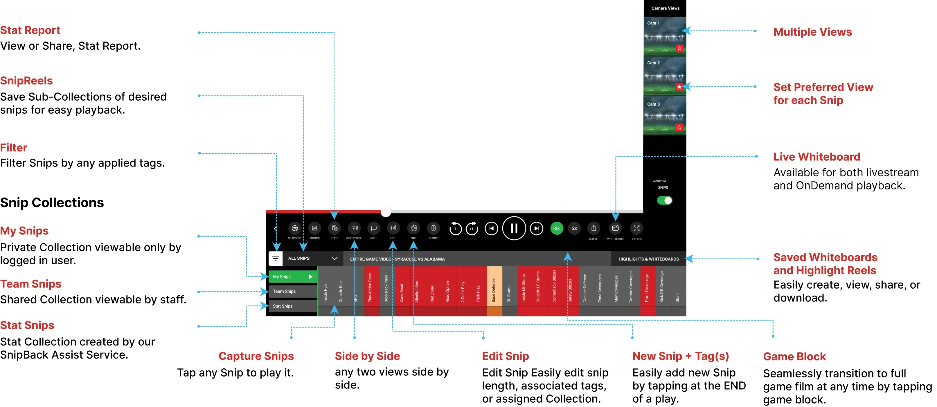 “SnipBack is a coaches dream! The use of film to teach the game is imperative these days - whether you are coaching, training, or scouting, film is an ever-increasing tool being used! SnipBack allows that feedback in real-time! It’s extremely user friendly and is an incredibly affordable solution for coaches, athletes, parents, trainers of all sports!”